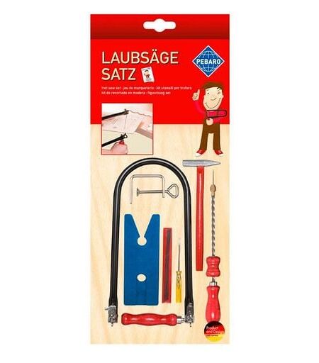 Laubsäge-Starter-Set - Pefektes Set für Anfänger Inhalt: Laubsäge, Laubsägetischchen, Zwinge, Laubsägeblätter, Laubsägeschlüssel, Schraubendreher (Schlitz), Hammer, Drillbohrer, Anleitung - Hier ist alles für den kleinen Bastler schon dabei und auch die Innenräume der Laubsägearbeit lassen sich durch den Drillbohrer einfach aussägen - Loch bohren, Blatt durch das Loch einspannen und los gehts! Made in Germany: Unsere Laubsägen werden ausnahmslos in Wuppertal, Deutschland gefertigt. Die Marke PEBARO steht für einen sehr hohen Standard und der manuelle Zusammenbau unserer Werkzeuge gewährleistet unser hohes Qualitätsniveau. Wir verbinden unseren Namen und die Gestaltung unserer Produkte mit der Vorstellung von höchster Qualität und bieten Produkte, die Freude machen sollen. ...