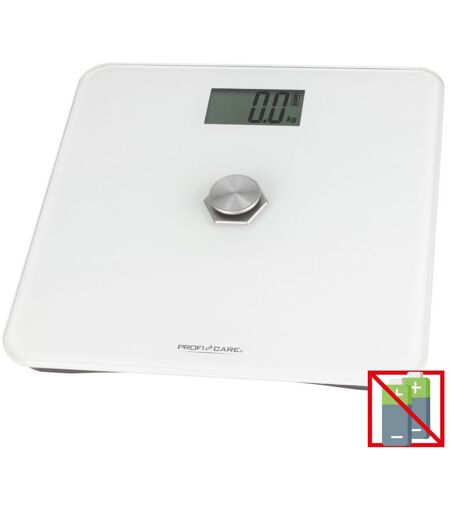 Entdecken Sie unsere neue Personenwaage von ProfiCare mit kinetischer Energie. Ohne den Einsatz von Batterien ermöglicht diese Waage eine selbstständige Energieerzeugung durch einen kurzen Fußdruck auf den Power-Button. Die extra große Glasoberfläche, die mit ihren Maßen von etwa 31 x 31 cm überzeugt, ist hochwertig, kratzfest und pflegeleicht. Das hygienische Material unterstreicht die Qualität und sorgt für eine lange Lebensdauer der Körperwaage. Eine einfache Ablesbarkeit der Messergebnisse bietet Ihnen das extra große LCD-Display. Dabei können Sie zwischen den Maßeinheiten kg und lb umschalten und von einem Messbereich von 5–180 kg in 100 g-Schritten profitieren. Die automatische Abschaltung sowie die Anzeige für wenig Energie oder Überlast bieten Ihnen Sicherheit und Komfort während der Nutzung. Für einen sicheren Stand sorgen die Anti-Rutschfüße. ...
