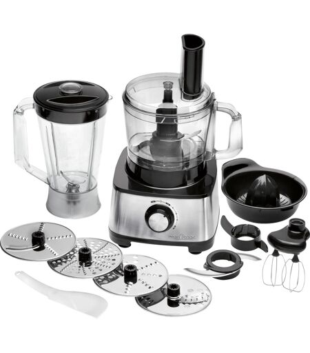 Die ProfiCook PC-KM 1063 ist eine leistungsstarke Küchenmaschine die sich zum Mixen, Kneten, Rühren, Entsaften und noch viel mehr eignet. Die PC-KM 1063 besitzt einen Arbeits- und Mixbehälter mit je 1,2 / 1,75 Liter Fassungsvermögen inklusive Nachfüllöffnung. Sämtliche Arbeitsscheiben und Einsätze sind ebenso wie die Maschine aus Edelstahl gefertigt. Die Leistung der Maschine lässt sich stufenlos regeln, zusätzlich bietet sie eine Turbo-Funktion für noch schnelleres Arbeiten. ...
