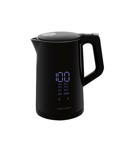 Damit Wartezeiten beim Wasserkochen der Vergangenheit angehören: der CLATRONIC Wasserkocher PC-WKS 1243 schwarz 1,7 l 2200 WAls ideale Ergänzung zu Ihren Küchenutensilien können Sie den CLATRONIC Wasserkocher PC-WKS 1243 schwarz 1,7 l 2200 W immer dann zur Hand nehmen, wenn Sie heißes Wasser in großer Menge benötigen und dieses bequem in Tassen oder Schalen einschenken wollen, zum Beispiel für die Zubereitung von Heißgetränken oder Instant-Gerichten. Die kabellose Bauweise erleichtert die Handhabung zudem immens.Was das Gerät zu bieten hatDank eines besonders hohen Fassungsvermögens von 1,7 l haben Sie bei diesem 2200 W starken Modell innerhalb kürzester Zeit genügend kochend heißes Wasser zur Hand. Damit Sie immer schnell heißes Wasser zur Verfügung haben, ist das Produkt mit einer Warmhaltefunktion ausgestattet. Um alles im Blick zu haben, ist der Artikel mit einer Wasserstandsanzeige ausgestattet.Das ist besondersFolgende Besonderheit bietet das Modell: Sensor Touch-Bedienung.Die Beschaffenheit des BehältersDer CLATRONIC Wasserkocher PC-WKS 1243 schwarz 1,7 l 2200 W besteht aus mattierter Edelstahlbehälter. Dieses Material sorgt dafür, dass er robust und pflegeleicht ist. Das verdeckte Heizelement sorgt für eine reibungslose und unkomplizierte Reinigung. Diese wird am besten mit einem Schwamm durchgeführt.Mit integriertem TrockengehschutzAufgrund des vorhandenen Überhitzungsschutzes sind Sie bei diesem Exemplar auf der sicheren Seite. Das bedeutet, dass sich das Gerät automatisch abschaltet, wenn es im Betrieb zu heiß wird. Zudem ist das Modell mit einem Trockengehschutz ausgestattet. Diese Sicherheitsvorkehrung garantiert, dass eine Inbetriebnahme ohne eingefüllten Inhalt nicht möglich ist. Ebenfalls vorhanden ist eine Abschaltautomatik, mittels derer das Gerät abschaltet, sobald das Wasser kocht. Sie verhindert also, dass das Wasser endlos weiterkocht.Was Sie zum Deckel wissen solltenDer Klappdeckel vereinfacht die Handhabung um ein Vielfaches. Eine Hand genügt, um den Deckel zu öffnen, sodass Sie die andere Hand frei haben, um den Behälter mit Wasser zu befüllen. Völlig uneingeschränkt bei der Platzwahl in Ihrer Küche sind Sie dadurch, dass das Gerät frei drehbar ist. Auch das Handling ist dadurch immer einfach.Klingt gut, richtig?Mit seiner neutralen Farbe in Schwarz passt der Artikel zudem wunderbar in jede Küche. Bestellen können Sie den CLATRONIC Wasserkocher PC-WKS 1243 schwarz 1,7 l 2200 W schnell und bequem hier bei uns online. ...
