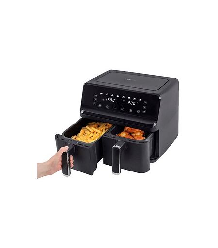 Unheimlich vielseitig und praktisch – die CLATRONIC FR 3804 H HeißluftfritteuseMit der CLATRONIC FR 3804 H Heißluftfritteuse kommen Sie nicht nur in den Genuss vieler unterschiedlicher Gerichte, sondern auch zahlreicher Vorteile gegenüber anderen Zubereitungsarten: Kein spritzendes ÖlKalorienarme Zubereitung ohne FettKaum GeruchsentwicklungEinfache ReinigungEnergiesparender als viele andere GeräteMit dieser Leistung können Sie rechnenUm genau einschätzen zu können, ob das Modell zu Ihrem Einsatzzweck passt, sehen Sie hier seine Kapazität: 2 x 4,0 l. Mit 2700 W weist das Exemplar ordentlich Power auf. Das Produkt kann ganz einfach über die nächste Steckdose mit Strom versorgt werden.Die BesonderheitenFolgende besonderen Features hat der Artikel außerdem zu bieten: 2 seperate Frittier-Behälter, Einzel- und Kombibetrieb möglich, separate Steuerung über 2 Sensor Touch-Bedienfelder, keine Geschmacksvermengung aufgrund von zwei getrennten Frittier-Behältern, zeitgleiches Frittieren von 2 unterschiedlichen Speisen, 8 Automatikprogramme, Variable Auftau-/ Warmhaltefunktion, individuelle Zeit-/ Temperatureinstellung, "Just in Time" System - Mahlzeiten mit verschiedenen Garzeiten bzw Temperaturen werden simultan zubereitet für ein punktgenaues Servieren, geringe Rauch und Geruchsentwicklung, 2 LED-Displays mit Sensor Touch-Bedienung, 2 separat regelbare Thermostate (80°C - 200°C).Wichtige Eigenschaften zusammengefasstDiese praktischen Eigenschaften hat das Produkt zu bieten: stromsparend, ohne Öl, stufenlose Temperatureinstellung, Abschaltautomatik, Antihaftbeschichtung, Überhitzungsschutz, wärmeisolierter Griff, Timer. Dank seiner Wärmeisolierung heizt sich der Griff nicht so stark auf und kann jederzeit angefasst werden. Aufgrund der integrierten Abschaltautomatik geht das Gerät nach getaner Arbeit automatisch aus, was für eine besonders sichere und effiziente Anwendung sorgt.Wie groß ist die CLATRONIC FR 3804 H Heißluftfritteuse und wie ist sie beschaffen?Folgende Maße hat das Produkt: Tiefe: 300,0 mm Höhe: 38,5 cm Breite: 371,0 mm. Aus Kunststoff und Edelstahl hergestellt, ist das Utensil nicht nur funktional und langlebig, sondern punktet auch durch beste Pflegeeigenschaften und wenig Gewicht.Danach haben Sie gesucht?Bestellen können Sie die CLATRONIC FR 3804 H Heißluftfritteuse bequem hier bei uns im Online-Shop. ...