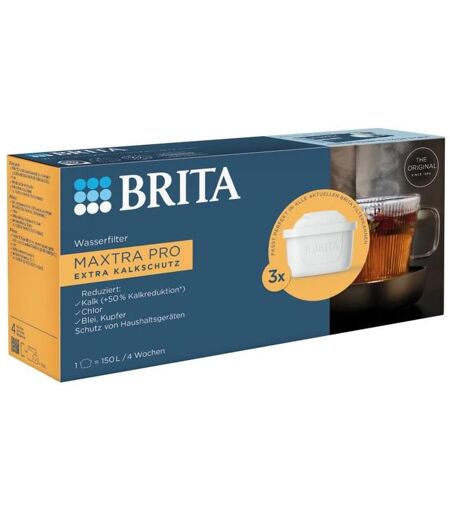 Der Kalkexperte: Für optimalen Geschmack von Tee und Kaffee und ultimativen Geräteschutz. Produkt-Highlights: Reduziert Kalk (50% effektivere Kalkreduktion im Vergleich zur BRITA ALL-IN-1), geschmacksstörende Stoffe wie Chlor, Blei und Kupfer; 1 MAXTRA PRO Wasserfilterkartusche ersetzt bis zu 150 Einwegplastikflaschen (1 Liter), das bedeutet + 50 L mehr Kapazität & günstigerer Literpreis vs. Vorgängermodell MAXTRA+; Kompatibel mit allen BRITA Tischwasserfiltern dank bewährtem BRITA PerfectFit-System; Produkteigenschaften für 150 Liter gefiltertes Wasser pro Kartusche; Kartuschenwechsel ca. alle 4 Wochen notwendig; 3er Pack; Passend für alle Brtia Filterkannen und Brita Flow; ...