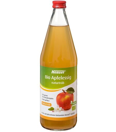 Bitte achten Sie auf eine abwechslungsreiche und ausgewogene Ernährung und gesunde Lebensweise.Der Hensel Bio Apfelessig naturtrüb wird mit ganzen Äpfeln von Streuobstwiesen aus kontrolliert biologischem Anbau hergestellt. Traditioneller Streuobstanbau trägt zum Erhalt alter Regional-Obstsorten bei, ist naturverträglich und fördert die Tier- und Pflanzen-Vielfalt. Bei der Herstellung von Bio-Lebensmitteln wird laut Bio-Recht auf den Einsatz von genetisch veränderten Organismen verzichtet. Zudem werden bei diesem Produkt bewusst keine künstlichen Zusatz- und Hilfsstoffe eingesetzt. Mit ganzen Bio-Streuobstäpfeln, nicht gefiltert Zum Würzen von Speisen und Salaten Zum Marinieren und Konservieren von Gemüse, Früchten, Fisch und Fleisch Auch zur KörperpflegeZutaten:Bio Apfelessig.5 % Säure, biologisch gewonnen.Anwendung:Zum Würzen von Speisen und Salaten, zum Marinieren und Konservieren von Gemüse, Früchten, Fisch und Fleisch.Als Erfrischungsgetränk für einen belebten Start in den Tag: 2 TL in ein Glas Wasser einrühren. Bei Bedarf mit Honig oder Agavendicksaft süßen.Als Körperpflege zur Reinigung der Haut:2 bis 3 EL pro Liter Wasser zum Einreiben oder 100 bis 200 ml pro Vollbad als Badezusatz.Natürliches Fruchtfleisch – vor Gebrauch gut schütteln.Aufbewahrungshinweis:Nach dem Öffnen wieder sorgfältig verschließen und kühl aufbewahren. Nettofüllmenge: 750 ml Hersteller: SALUS HausDr. med. Otto Greither Nachf. GmbH & Co. KGBahnhofstr. 2483052 Bruckmühl ...