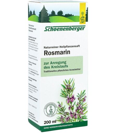 Anwendungsgebiet von Schoenenberger Naturreiner Heilpflanzensaft Rosmarin Schoenenberger Naturreiner Heilpflanzensaft Rosmarin ist ein traditionelles pflanzliches Arzneimittel zur Unterstützung der Herz-Kreislauf-Funktion ausschließlich aufgrund langjähriger Anwendung.Wirkstoffe / Inhaltsstoffe / ZutatenInhaltsstoffe von Schoenenberger Naturreiner Heilpflanzensaft Rosmarin : 100 ml enthalten: