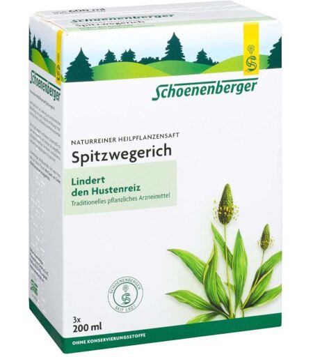 100 ml enthalten: 100 ml Presssaft aus frischem Spitzwegerichkraut (Plantago lanceolata L.) (1 : 0,60 –0,90).GegenanzeigenBei bekannter Überempfindlichkeit gegenüber einem der oben genannten Inhaltsstoffe sollte dieses Produkt nicht angewendet werden.DosierungAnwendungsempfehlung von Schoenenberger Naturreiner Heilpflanzensaft Spitzwegerich: Die empfohlene Dosierung liegt bei Erwachsenen und Kindern ab 12 Jahren bei 10 ml Saft, der dreimal täglich eingenommen wird. Kinder von 4 bis 12 Jahren sollten 5 ml Saft, ebenfalls dreimal täglich, einnehmen. Der Saft kann pur oder mit etwas Wasser verdünnt eingenommen werden. Eine kontinuierliche Anwendung � ...