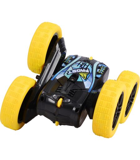 Schwindelerregende 360°-Spins um die eigene Achse oder mühelose Überschläge an Bordsteinen & Hindernissen – all das ist kein Problem für den Fire ''n Frost Flippy! Denn die rotierenden Achsen des RC Spielzeugautos können sich unabhängig voneinander bewegen und ermöglichen so flinke Manöver und rasante Fahrten bis 8 km/h – die perfekte Outdoor-Beschäftigung für Kinder ab 6 Jahren. Auf seinen knallgelben monstertruck-ähnlichen Gummirädern saust das ferngesteuerte Kinderauto nahezu über jeden Untergrund – und das auf gleich zwei Seiten! Einfach eine 180°-Drehung hinlegen und schon wechselt das Design des RC Cars: Passend zu seinem Namen werden die beiden Fahrzeug-Seiten durch eine rote Feuer- und eine blaue Eis-Optik unterschieden, die durch das LED-Licht an der Vorderseite in zusätzlichem Glanz erstrahlen. ...