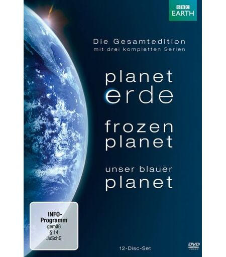 "Drei der spektakulärsten BBC-Naturdokumentationen erstmals in einer Premium-Collection! Die größte Expedition aller Zeiten führt zu den atemberaubendsten Naturlandschaften unseres Planeten. Das Premium-Box-Set enthält die komplette 11-teilige Serie ""Planet Erde"", die komplette 7-teilige Serie ""Frozen Planet - Eisige Welten"" sowie die komplette 8-teilige Serie ""Unser Blauer Planet"". Unvergleichliche Bilder, faszinierende Naturräume, unglaubliche Verhaltensweisen von Tieren und spektakuläre Aufnahmen - nach dieser Doku-Reihe werden Sie unseren Planeten mit anderen Augen wahrnehmen! In 11 Folgen zeigt ""Planet Erde"" die großen Lebensräume der Erde. In 7 Folgen erforscht ""Frozen Planet - Eisige Welten"" die Tier- und Naturwelten der Polarregionen und in 8 Folgen enthüllt ""Unser Blauer Planet"" die Geheimnisse der Ozeane." ...