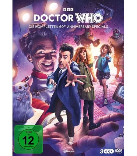 "Die langerwarteten Specials zum 60. Jubiläum von ""Doctor Who"" inklusive 5 Stunden exklusives Bonusmaterial und Booklet. ""Doctor Who – Die kompletten 60th Anniversary Specials"" enthält drei Sonderepisoden mit David Tennant als Doktor und Catherine Tate als seine Begleiterin Donna Noble. Special 1: Doctor Who: Das Monster von den Sternen Der Doktor ist in einen Kampf auf Leben und Tod verwickelt, als ein Raumschiff in London abstürzt, und er seine alte Freundin Donna Noble wiedertrifft. Special 2: Doctor Who: In Blauer Ferne Die TARDIS ist außer Kontrolle, setzt den Doktor und Donna auf einem seltsamen unbekannten Raumschiff ab und verschwindet. Um zu entkommen, müssen sie den erbittertsten Kampf ihres Lebens führen … Special 3: Doctor Who: Das Kichern Das Kichern einer geheimnisvollen Puppe treibt die Menschen in den Wahnsinn. Als der Doktor die Rückkehr des furchterregenden Spielzeugmachers entdeckt, sieht er sich einem Kampf gegenüber, den er niemals gewinnen kann. Die Specials sind das Bindeglied zwischen dem von Jodie Whittaker gespielten Doktor und der aktuellen Staffel 14, in der Ncuti Gatwa erstmals die Rolle des Doktors übernimmt. In einer hochkarätigen Gastrolle ist Hollywood-Star Neil Patrick Harris („How I Met You Mother“) zu sehen." ...