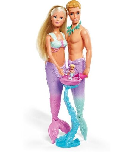 • Ankleidepuppe - Steffi LOVE ist eine echte Modepuppe. Sie liebt schicke Klamotten, trendige Frisuren, ihre kleine Schwester Evi und natürlich ihren Freund Kevin. Mädchen und Jungs können ihre Puppe in den aktuellen Modetrends stylen und kleiden • Schwangere Meerjungfrau - Steffi verzaubert als schwangere Meerjungfrau, deren Baby leicht aus dem Bauch entnommen und somit gebor en werden kann. An ihrer Seite befindet sich Kevin als Meerjungmann. • Mit Baby - Steffi und Kevin kümmern sich liebevoll um ihr Baby. Sobald dieses geboren wurde, kann es von den Kindern in das kleine Kinderbett im Design einer Muschel gelegt werden. • Setinhalt - neben der 29cm großen Steffi Puppe ist im Set auch eine Kevin Puppe als Meerjungmann, ein Baby sowie ein Babybett enthalten. • Simba - Elefantenstarker Spielspaß. Im Zentrum der Produktentwicklung steht die Begeisterung der Kinder. Für Jungen und Mädchen, Klein und Groß. Kinder sollen Spaß haben und gefördert werden. ...