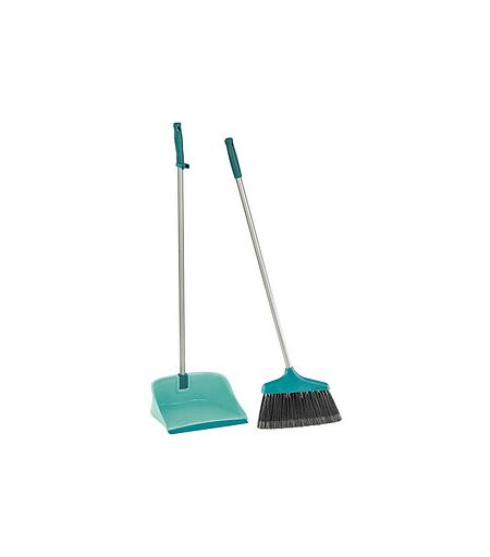 LEIFHEIT Kehrgarnitur mit langem Stiel Classic in Türkis – komfortables Kehren leicht gemachtMüheloses Reinigen kann so einfach sein – mit dem der LEIFHEIT Kehrgarnitur im ergonomischen Design. Die LEIFHEIT Kehrgarnitur überzeugt mit extralangem Stiel. Dank dem können Sie bequem im Stehen kehren, ohne sich bücken zu müssen. Das ergonomische Handling schont Rücken und Gelenke – ideal für alle, die häufig kehren müssen. Vielseitig einsetzbar – im Innen- und Außenbereich Ob glatte Böden im Innenbereich oder unebene Oberflächen draußen: Die Kehrgarnitur ist für jeden Untergrund geeignet. Mit einer Breite von 30 cm und einer integrierten Gummilippe nimmt die Schaufel selbst feinste Partikel zuverlässig auf. Praktisch und platzsparend Der Besen verfügt über eine integrierte Besenhalterung und lässt sich direkt an der Schaufel einhängen. Eine praktische Aufhängeöse sorgt für eine platzsparende Aufbewahrung. Das Set ist aus leichtem, robustem Kunststoff gefertigt und überzeugt durch sein stilvolles türkisfarbenes Design. Sorgen Sie im Handumdrehen für Sauberkeit – mit der LEIFHEIT Kehrgarnitur Classic! ...