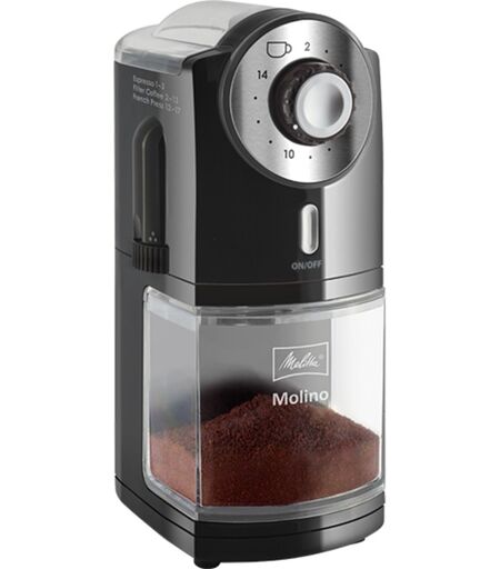 Mit der Melitta Molino Kaffeemühle kann man selbst entscheiden, ob man fein gemahlenes Kaffeepulver für aromatisch kräftigen Espresso haben will oder eine gröbere Zubereitung für Filterkaffee. Der Mahlvorgang wird mit nur einem Knopfdruck gestartet. Sobald der Mahlvorgang abgeschlossen ist, schaltet sich die Melitta Molino automatisch ab. ...