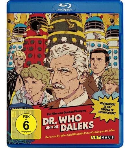 "Dr. Who (Peter Cushing), Tüftler und Wissenschaftler, hat eine Maschine entworfen: TARDIS! Die modifizierte Police-Box ist Zeitmaschine und Raumschiff zugleich. Der Doktor wohnt mit seinen Enkelinnen Susan (Roberta Tovey) und Barbara (Jennie Linden) zusammen. Bei einem Besuch aktiviert Barbaras Freund Ian (Roy Castle) TARDIS aus Versehen und die vier begeben sich auf eine Reise durch Zeit und Raum in die dunklen, unentdeckten Tiefen des Universums. Auf dem Planeten Skaro geraten sie zwischen die Fronten eines Kriegs zwischen dem friedlichen Volk der Thals mit einer böshaften, zerstörerischen Lebensform: den Daleks. Achtung Kultfaktor: ""Dr. Who und die Daleks"" ist der erste Film, der die legendäre Sci-Fi-Serie unter der Regie von Gordon Flemyng auf die große Leinwand brachte, und das erstmals in Farbe. In der Rolle des Doktors brilliert Charakterdarsteller Peter Cushing (""Sherlock Holmes"", ""Star Wars""), seine Enkelinnen werden von Jennie Linden und Roberta Tovey verkörpert. Presse: - ""Cushing spielt Dr. Who mit liebenswerter Erhabenheit"" - (Variety) - ""Mit urigem Flash-Gordon-Charme und phantasievollen Kulissen"" - (LA Times)" ...