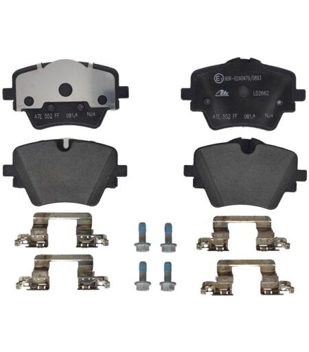 Anzahl der schrauben: 4. Breite [mm]: 129. Bremssystem: Lucas / TRW. Dicke [mm]: 18,4. Hersteller: ATE. Herstellernummer: 13.0470-2662.2. Höhe [mm]: 74,6, 70,1. Index: 13.0470-2662.2. Montage Achse: Vorne. Produktart: Bremsbelagsatz. Typprüfung: E1 90R-02A0479/0893. Verschleißkontakt: Nein. Vorbereitung für Verschleißkontakt: Ja. ...