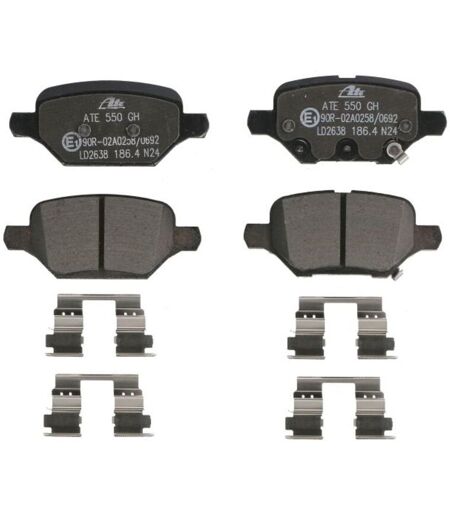 Breite [mm]: 106,5. Bremssystem: Lucas / TRW. Dicke [mm]: 17,2. Hersteller: ATE. Herstellernummer: 13.0470-2638.2. Höhe [mm]: 47,2, 45,7. Index: 13.0470-2638.2. Material: Ceramic. Montage Achse: Hinten. Produktart: Bremsbelagsatz. Typprüfung: E1 90R-02A0258/0692. Verschleißkontakt: Ja. verschleisskontakttyp: akustisch. ...