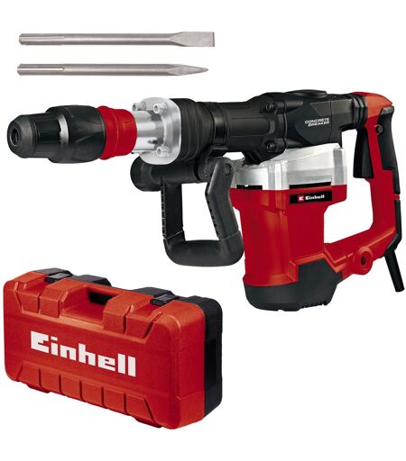 Der Einhell Abbruchhammer TE-DH 32 ist ein robustes starkes Werkzeug für Bau-, Sanierungs- und Abbrucharbeiten. Mit einer Leistung von 1.500 Watt liefert er eine Schlagkraft von 32 Joule. Der vibrationsgedämpfte Griff reduziert Schwingungen, und der Zusatzhandgriff des TE-DH 32 lässt sich um 180° vertikal sowie um 360° horizontal verstellen. Außerdem dämpfen die Softgrip-Einlagen die Schwingungen auch im Zusatzhandgriff. So ist er flexibel an jede Arbeitsposition angepasst. Der TE-DH 32 ist mit einer robusten SDS-max Werkzeugaufnahme ausgestattet, die für einen schnellen und einfachen Werkzeugwechsel sorgt. Zum Anschluss an das Stromnetz verfügt er über ein vier Meter langes flexibles Gummikabel. Der Abbruchhammer ist durch seine robuste und langlebige Konstruktion auch für anspruchsvollen Dauerbetrieb ausgelegt. Durch die mitgelieferten passenden Spitz- und Flachmeißel ist der Abbruchhammer sofort einsatzbereit. ...