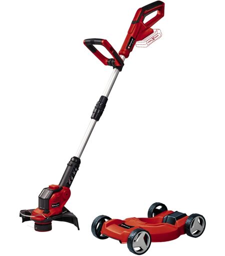 Der Akku-Rasentrimmer GE-CT 18/28 Li TC - Solo ist ein leistungsstarkes Gerät, das überall dort für einen gepflegten Rasen sorgt, wo ein Rasenmäher nicht hinkommt. Mit ihm werden auch Rasenkanten an Rändern und entlang von Wegen mit einer Schnittbreite von 28cm ideal getrimmt. Mit dem 90° drehbaren und 3-fach neigbaren Motorkopf erreicht der Akku-Rasentrimmer GE-CT 18/28 Li TC - Solo auch senkrechte Flächen, Rasenkanten und Engstellen z.B. unter Gartenmöbeln völlig problemlos. Zum Schutz von Blumen, Zierpflanzen und anderen empfindlichen Objekten ist das Gerät mit dem Pflanzenschutzbügel "Flowerguard" ausgestattet. Das mitgelieferte "Trimmer Cart" verwandelt den handgeführten Trimmer in einen handlichen City-Rasenmäher mit 2-stufiger, axialer Schnitthöheneinstellung von 35mm bis 55mm. Das Cart verfügt über ein Klick-System zum einfachen und werkzeuglosen Einclippen des Rasentrimmers. Der stufenlos teleskopierbare Führungsholm passt sich jeder Körpergröße an und sorgt für eine komfortable Haltung. Die Fadenspule (5m) ist mit einer vollautomatischen Fadennachführung ausgestattet. Die Lieferung erfolgt ohne Akkus und ohne Ladegerät. Zum Betrieb des Akku-Rasentrimmers GE-CT 18/28 Li TC - Solo ist ein separat erhältlicher 18 Volt-Systemakku aus der Power X-Change-Reihe erforderlich. ...