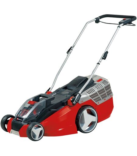 Der Einhell Akku-Rasenmäher GE-CM 43 Li M ist ein sehr hochwertiges, zuverlässiges und äußerst leistungsstarkes Gerät für die kabellose Pflege größerer Rasenflächen. Durch das neue Power X-Change Batteriesystem von Einhell verfügt der Rasenmäher über zwei starke 18 V Akkus mit 4,0 Ah, für ausgedehnte Einsätze ohne lästiges Stromkabel. Die sechsstufige zentrale Schnitthöhenverstellung erlaubt die einfache, individuelle Einstellung der Schnitthöhe. Der GE-CM 43 Li M ist mit einem dreifach höhenverstellbaren und klappbaren Führungsholm ausgestattet. Dadurch kann er perfekt an jede Körpergröße angepasst und platzsparend verstaut werden. Jeder Akku verfügt über eine Akku-Füllstandanzeige mit drei LEDs, auf der sich der aktuelle Ladezustand auf einen Blick ablesen lässt. Die Akkus können zudem für sämtliche Geräte der Power X-Change Familie verwendet werden. Zum Lieferumfang gehören zusätzlich zwei Schnellladegeräte. Als Highwheeler verfügt der GE-CM 43 Li M über erhöhte Hinterräder, die das Arbeiten in schwierigem Gelände erleichtern. Seine großflächigen Räder schonen zudem den Rasen. Die große Grasfangbox ist mit einer Füllstandanzeige ausgestattet, so dass man sofort sieht, wenn eine Leerung erforderlich wird. Das langlebige Gehäuse besteht aus hochwertigem, schlagzähem Kunststoff. Ein praktischer Tragegriff sorgt für den einfachen Transport. Zusätzlich ermöglicht ein Mulchkeil das feine Zerkleinern des Mähguts, welches dann gleichmäßig auf dem Rasen verteilt wird und damit zusätzlich den Rasen düngt. Der GE-CM 43 Li M wird für Rasenflächen bis 600 m² empfohlen. ...
