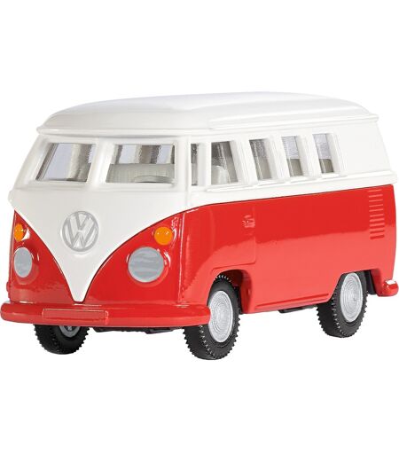 Der T1 von VW ist mehr als einfach nur ein Fahrzeug - er ist eine echte Legende. Bereits in den 1950er Jahren begann die Erfolgsgeschichte des deutschen Kleinbusses, der von seinen Fans liebevoll „Bulli“ genannt wird. Er galt als ein Symbol des deutschen Wirtschaftswunders, in den USA war das Modell dann später unter den Hippies Kult. Durch sein rundliches Design mit glänzendem Lack und verchromten Stoßstangen spricht er mit seinem ausgeprägten Vintage-Charakter noch heute eine große Fangemeinde an. Als Modell gibt es den Kultbus im Maßstab 1:50 in der unverwechselbaren weiß-roten Farb-Kombination mit originalgetreuen Rädern. Karosserie und Türen sind aus Metall, der Aufbau ist aus Kunststoff. An der rechten Fahrzeugseite lassen sich zwei Türen öffnen. Durch seine Anhängerkupplung kann der T1 mit vielen Anhängern kombiniert werden. ...