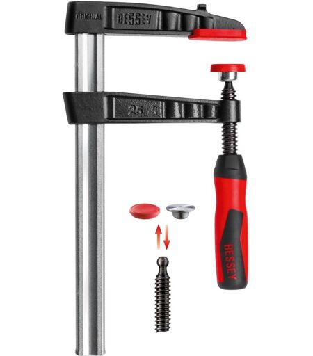 Die BESSEY Schraubzwinge TG16-2K erreicht eine Spannkraft von bis zu 6.000 N. Sie verfügt über verstärkte Tempergussbügel, sowohl Ober- als auch Unterteil sind aus hochwertigem Temperguss gefertigt und durch Wellen verstärkt. Das charakteristische Wellenprofil wirkt als zuverlässige Verstärkung gegen Torsionskräfte. Die hochwertige BESSEY-Hohlprofilschiene aus der firmeneigenen Zieherei ist speziell für Zwingen optimiert. Die 6-fache Riffelung verhindert wirkungsvoll ein Abrutschen der Schraubzwinge. Für maximale Sicherheit beim Spannen sorgt zusätzlich die integrierte BESSEY Rutschsicherung, die alle Temperguss‑Schraubzwingen ab 80mm Ausladung haben. Ein Gewindestift im Gleitbügel greift in die Schienenriffelung, dadurch wird ein Lösen oder Abrutschen der Zwinge effektiv verhindert. Die Pulverbeschichtung schützt sie effektiv vor Korrosion. Die werkzeuglos wechselbare Druckplatte lässt sich bei Bedarf sehr komfortabel und schnell austauschen. ...
