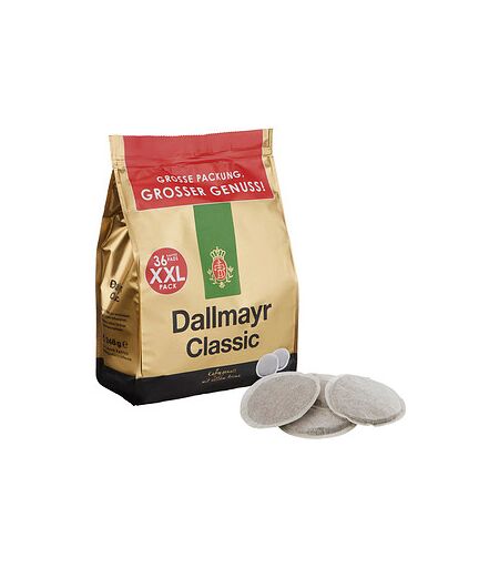 Ein echter Klassiker unter den RöstkaffeesKaffee gehört zu den beliebtesten Getränken der Welt: er macht wach und überzeugt mit vollmundigem Geschmack. Der Kaffee in den Kaffeepads von Dallmayr stammt zu 100 % von ausgewählten Arabica- und Robustabohnen, die schonend geröstet wurden. Dieser Pack kommt mit einzeln verpackten Kaffeepads zu Ihnen.Vollmundiger GeschmackDas Geheimnis des unverwechselbaren Charakters von Classic liegt bereits in den Rohkaffees: Dallmayr verwendet ausschließlich feinste Hochlandgewächse aus den besten Anbaugebieten der Welt. Die wichtigsten Bezugsländer sind Äthiopien, Papua Neuguinea, Kolumbien und Brasilien. Einfach eine saubere Sache!Diese Kaffeepads eignen sich für Padsysteme. Neben einem unübertrefflichen Aroma und der herrlichen Crema ist das Pulver der Pads immer perfekt vorportioniert, und die Maschine bleibt stets sauber. Da wird schon die Zubereitung zum Vergnügen!Begeistern Sie Ihre Kunden mit diesen feinen Kaffeepads Classic von Dallmayr und bestellen Sie sie noch heute hier im Shop. ...