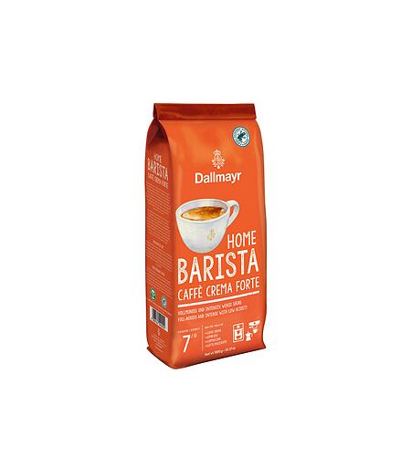 Mit Dallmayr Home Barista Caffè Crema Forte genießen Sie Cappuccino in Barista-Qualität!Wenn Sie nicht nur im Kaffeehaus, sondern bereits bei der Arbeit das samtig leckere Barista Kaffee-Erlebnis genießen wollen, dann sind die Kaffeebohnen Home Barista Caffè Crema Forte von Dallmayr ideal für Ihren Kaffee-Vollautomaten. Damit zaubern auch Sie im Handumdrehen: Caffè CremaLatte MacchiatoEspressoCappuccino... und das mit dichter, samtiger und goldbrauner CremaBarista Forte steht für seinen kräftigen Charakter mit wenig SäureAuf der Intensitäts-Scala erreicht der Home Barista Caffè Crema Forte die Stufe 7 von 10. Dieser kräftige Geschmack wird durch eine fein abgestimmte Mischung und die schonende Röstung erreicht. Denn die Kaffeebohnen Home Barista Caffè Crema Forte werden dunkel und lange geröstet, um einen intensiven Geschmack bei wenig Säure zu erzielen. Hinzu kommt ein vollmundiges Aroma. Schließen Sie mal kurz Ihre Augen und genießen Sie mit allen Sinnen das raffinierte Aromenspiel und die harmonischen Röstnoten.Fair schmeckt's besser!Dallmayr sorgt dafür, dass Sie Ihre Barista-Spezialitäten voll und ganz genießen können. Denn die Kaffeebohnen Home Barista Caffè Crema Forte aus nachhaltigem Anbau werden fair gehandelt und sind deshalb mit dem Rainforest Alliance-Zertifikat ausgezeichnet.Unser Tipp: Lagern Sie die geöffnete Packung Home Barista Caffè Crema Forte kühl und trocken. Gönnen Sie sich diesen besonderen Kaffee für Ihre verdienten Pausen und bestellen Sie die Kaffeebohnen Home Barista Caffè Crema Forte von Dallmayr hier in unserem Online-Shop. ...