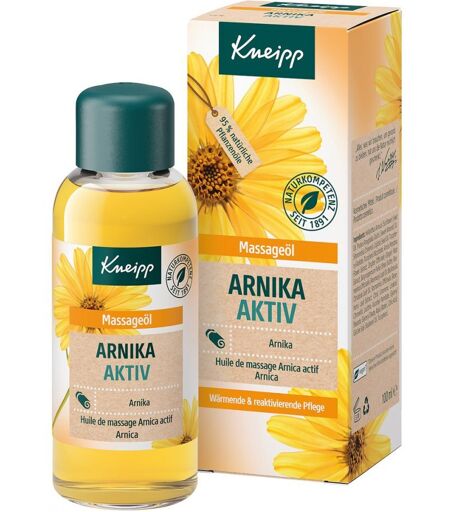 Anwendungsgebiet von Kneipp Massageöl Arnika AktivKneipp Massageöl Arnika Aktiv mit Arnika- und Ingwerextrakten, Sheabutter sowie Sonnenblumenöl pflegt ihre Haut. Das enthaltene Mandelöl wirkt feuchtigkeitsregulierend. Kneipp Massageöl Arnika Aktiv sorgt für ein entspanntes Hautgefühl. Eine wärmende Massage mit dem Massageöl dient der reaktivierenden Entspannung nach körperlicher Anstrengung und kann sich somit wohltuend auf die Muskulatur auswirken.Wirkstoffe / Inhaltsstoffe / ZutatenKneipp Massageöl Arnika Aktiv enthält: