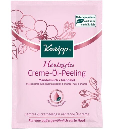Anwendungsgebiet von Kneipp hautzartes Creme-öl-peelingKneipp hautzartes Creme-öl-peeling mit der einzigartigen Kombination aus feinen Zuckerkristallen und einer reichhaltigen Öl-Creme lässt Ihre Haut in neuem Licht erstrahlen! Kneipp hautzartes Creme-öl-peeling entfernt überschüssige Hautschüppchen sanft, während die reichhaltige Verwöhncreme mit wertvollem Mandelöl Ihre Haut intensiv nährt. Für eine glattere und strahlend schöne Haut - spüren Sie den Unterschied! Wirkstoffe / Inhaltsstoffe / ZutatenInhaltsstoffe von Kneipp hautzartes Creme-öl-peeling: