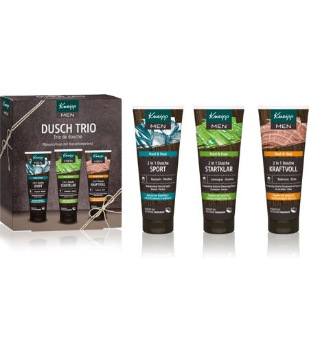 Kneipp Men Shower Trio, , Körperpflege-Sets für Herren für Herren, Alles für eine schöne Haut in einem Produkt. Das Kosmetikset Kneipp Men Shower Trio enthält gleich mehrere Produkte für die tägliche Schönheitsroutine und eignet sich auch ideal als ein schönes Geschenk für Ihre Lieben. Das Set beinhaltet: Kneipp Ready To Go Duschgel 2 in 1 75 ml Freeze Refreshment Duschgel für Haare und Körper 75 ml Full Strenght Duschgel Für Körper und Haar 75 ml Eigenschaften: reinigt die Haut und entfernt Verunreinigungen pflegt und nährt die Haut verleiht der Haut nach der Anwendung ein Gefühl von Frische und Energie kann für den Körper und das Haar benutzt werden ideal als Geschenk geeignet Zusammensetzung: ist vegan Anwendung: Tragen Sie das Mittel auf die nassen Haare und die nasse Haut auf. Schäumen Sie es leicht auf und massieren Sie es ein. Dann spülen Sie es gründlich ab. ...