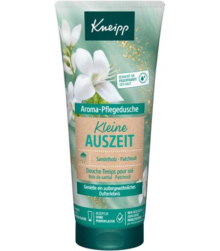 Anwendungsgebiet von Kneipp Aroma-Pflegedusche Kleine AuszeitDie Kneipp® Aroma-Pflegedusche "Kleine Auszeit" bietet ein pflegendes Duscherlebnis mit einem besonderen Duft. Lass dich vom warmen, holzigen Aroma natürlicher ätherischer Öle umhüllen. Genieße diesen kleinen Luxus im Alltag – einen Moment nur für dich.