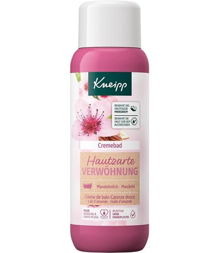 Gönnen Sie sich und Ihrer Haut etwas Besonderes mit dem Kneipp Cremebad Hautzarte Verwöhnung. Hochwertiger Mandelmilchextrakt und natürliches reichhaltiges Mandelöl schützen die Haut vor dem Austrocknen und schenken ein zartes Hautgefühl. Der pflegende Duft sorgt für entspannten Badegenuss. Die pflanzliche Pflegeformel aus Pflanzenmilch und natürlichem pflegendem Öl, in Kombination mit intensivem Duft und langanhaltendem cremigem Schaum, machen dieses Bad zu einem Wohlfühlerlebnis für Körper und Geist. Wirkstoffe / Inhaltsstoffe / ZutatenKneipp Cremebad Hautzarte Verwöhnung enthält:Aqua (Water), Sodium Laureth Sulfate, Glycerin, Coco-Glucoside, Cocamidopropyl Betaine, PEG-18 Glyceryl Oleate/Cocoate, PEG-40 Sorbitan Peroleate, Prunus Amygdalus Dulcis (Sweet Almond) Oil, Prunus Amygdalus Dulcis (Sweet Almond) Fruit Extract, Sine Adipe Lac, Citrus Aurantium Dulcis (Orange) Peel Oil, Lavandula Hybrida Oil, Pogostemon Cablin Leaf Oil, Limonene, Linalool, Benzyl Alcohol, Coumarin, Geraniol, Citral, Citronellol, Sodium Levulinate, Sodium Anisate, Parfum (Fragrance), Glycol Distearate, Sodium Chloride, Citric Acid, Denatonium Benzoate, Glycine Soja (Soybean) Oil, Tocopherol, CI 16255. GegenanzeigenDas Produkt sollte bei bekannter Überempfindlichkeit gegen einen der Inhaltsstoffe nicht angewendet werden.DosierungAnwendungsempfehlung von Kneipp Cremebad Hautzarte Verwöhnung: