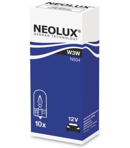 Art der Glühlampe: W3W. Hersteller: NEOLUX. Herstellernummer: NLX504 K10SZT. Index: NLX504 K10SZT. Lampentyp: Sekundär. Nennleistung [W]: 3. Spannung [V]: 12. Steckdosentyp: W2,1X9,5D. Stückzahl : 10. Verpackung: Karton. ...