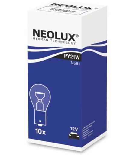 Art der Glühlampe: PY21W. Hersteller: NEOLUX. Herstellernummer: NLX581 K10SZT. Index: NLX581 K10SZT. Lampentyp: Sekundär. Lichtfarbe: orange. Nennleistung [W]: 21. Spannung [V]: 12. Steckdosentyp: BAU15S. Stückzahl : 10. Verpackung: Karton. ...