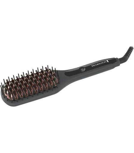 Die Straight Brush CB7400 Glättbürste von Remington vereint Haarbürste und Haarglätter in nur einem Produkt und reduziert dadurch die Stylingzeit. Sie ist für alle Haartypen geeignet und verfügt über antistatische, keramikbeschichtete Borsten, die ein Glätten der Haare in nur einem Zug ermöglichen und für ein glattes und geschmeidiges Styling sorgen. Die Borsten sind mit kühlen Enden ausgestattet, um die Verbrennungsgefahr zu reduzieren. 3 Temperatureinstellungen (150, 190, 230 °C), ein Ein- /Ausschalter und eine automatische Sicherheitsabschaltung nach 60 Minuten sind weitere Ausstattungsmerkmale der Straight Brush CB7400. Außerdem verfügt sie über ein Kabeldrehgelenk, ein 1,8 m langes Kabel und kommt in einer passenden Aufbewahrungstasche. ...