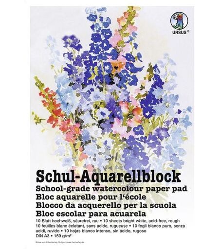 Ludwig Bähr URSUS Zeichen und Künstlerbedarf Schul-Aquarellblock 150 g/m², DIN A3, 10 Blatt hochweiß