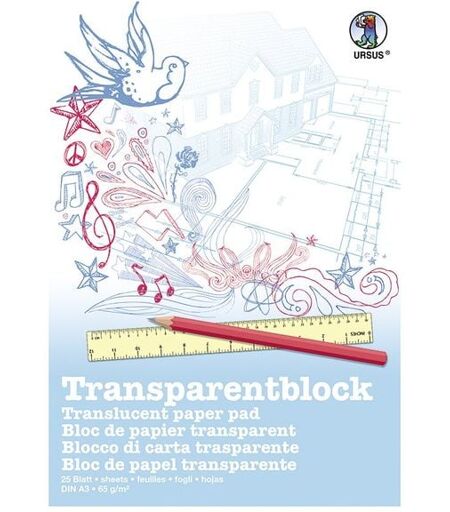 Transparentblock (Format DIN A3, 25 Blatt) aus holzfreiem, weißen Transparentpapier (65 g/m²) mit einem Blatt Millimeterpapier - URSUS®-Qualität: holzfrei - Made in Germany Geeignet für technische Zeichnungen. ...