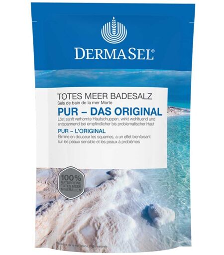 Dermasel Totes Meer Badesalz Pur enthält die kostbaren, gesundheitsfördernden Mineralien aus dem Salz des Toten Meeres, welche in diesem Pflegebad ihre tiefenreinigende und klärende Wirkung, vor allem bei Problemhaut, entfalten.