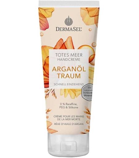 Anwendungsgebiet von Dermasel Totes Meer Handcreme Arganöl TraumDermasel Totes Meer Handcreme Arganöl Traum enthält kostbares Arganöl und naturreine Totes Meer Mineralien. Die traumhafte Pflegewirkung wird durch Sheabutter intensiviert und schenkt Ihnen ein samtweiches Hautgefühl ganz ohne PEG, Silikone oder Paraffine.