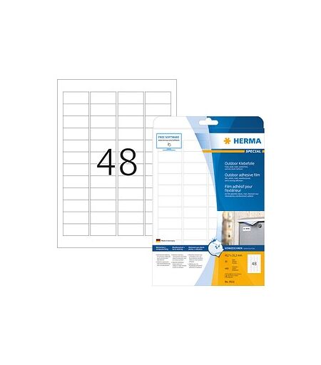 Die 480 HERMA Folien-Kraftklebe-Etiketten 9531 weiß 45,7 x 21,2 mm sind individuell bedruckbar und vielseitig einsetzbarEs gibt viele interessante Informationen zu den 480 HERMA Folien-Kraftklebe-Etiketten 9531 weiß 45,7 x 21,2 mm, einfach weiterlesen und mehr erfahren!Rechteckige Form mit Rand rundumMachen Sie den Design-Check: Benötigen Sie Gestaltungsspielraum und eine Kennzeichnung, die einen professionellen und neutralen Eindruck hinterlässt? Dann sollten Sie sich für eine weiße Etikettierung wie diese hier entscheiden. Mit einem sorgfältig gestalteten Rand konzipiert, werden Ihre Botschaften in den Mittelpunkt gerückt. Durch die rechteckige Form wird die ideale Balance zwischen Ästhetik und Funktionalität geschaffen, um Ihre Informationen ansprechend zu präsentieren. Für eine besonders formschöne Beschriftung sind zudem die Ecken abgerundet.Anzahl und Format der 480 HERMA Folien-Kraftklebe-Etiketten 9531 weiß 45,7 x 21,2 mmHier können Sie Ihren Vorrat wieder auffüllen, denn Sie erhalten insgesamt 480 Etiketten, auf jedem Blatt 48 Stück. Damit das Produkt zu Ihrem Verwendungszweck passt, muss das Format übereinstimmen. Die Maße liegen bei 45,7 x 21,2 mm (BxH). Sind Sie also auf der Suche nach einem A4-Format, passt dieses Produkt perfekt.Einfaches und schnelles DruckenDie 480 HERMA Folien-Kraftklebe-Etiketten 9531 weiß 45,7 x 21,2 mm sind optimal geeignet für Kopierer, Laser. Angeordnet sind die Exemplare auf einem A4-Bogen.Eigenschaften, die überzeugenAußerdem noch diese erwähnenswerten Eigenschaften:Temperaturbeständigkeit -40 °C bis +150 °CLösungsmittelfreiDiese weiteren Eigenschaften können ebenfalls nur überzeugen: Damit Ihnen die Auszeichnung lange erhalten bleibt, ist er Artikel sowohl abwaschbar als auch wasserabweisend als auch reißfest. Da kann so schnell nichts passieren!Mit matter OberflächeHier entscheiden Sie sich für ein Produkt aus Polyethylen-Folie. Hier erhalten Sie ein mattes Produkt. Hierdurch spiegelt die Etikettierung nicht und ist unempfindlicher gegenüber unschönen Fingerabdrücken. Das Aufkleben stellt kein Problem dar, hierfür sind die 480 HERMA Folien-Kraftklebe-Etiketten 9531 weiß 45,7 x 21,2 mm nämlich selbstklebend.Ganz nach Ihrem Anwendungszweck gestaltbarFür eine Etikettierung gibt es viele verschiedene Gründe und auch verschiedene Anwendungsmöglichkeiten. Damit Sie die Exemplare so gestalten können, wie Sie es benötigen, erhalten Sie diese in blanko.Auf der Suche nach etwas Besonderem?In den 480 HERMA Folien-Kraftklebe-Etiketten 9531 weiß 45,7 x 21,2 mm stecken folgende besondere Eigenschaften: Öl- und Schmutz abweisend, UV- und alterungsbeständigt, seewasserbeständig.Verleihen Sie Ihren Produkten das gewisse Etwas!Bestellen Sie die 480 HERMA Folien-Kraftklebe-Etiketten 9531 weiß 45,7 x 21,2 mm bequem hier in unserem Online-Shop!Etiketten online kostenlos gestalten, dazu hier Herma EtikettenAssistent öffnen ...