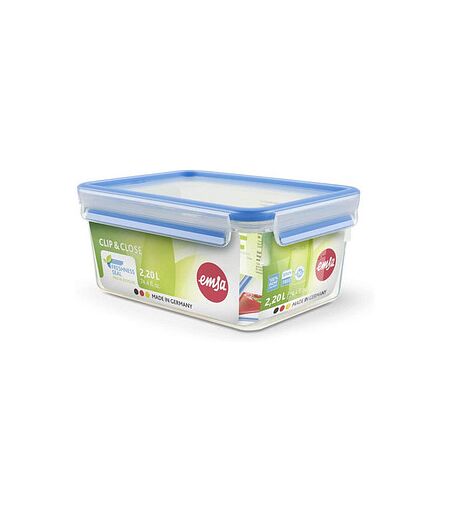 Die emsa Frischhaltedose CLIP & CLOSE 9,9 cm hoch transparent 2,2 l, 1 St. hält den Inhalt länger schön frischWas auch immer Sie frischhalten möchten – in der emsa Frischhaltedose CLIP & CLOSE 9,9 cm hoch transparent 2,2 l, 1 St. ist es bestens aufgehoben. Dank erstklassiger Verarbeitung und fest verschließbarem Deckel eignet sich die Box perfekt für die Aufbewahrung von verschiedensten Speisen – sowohl im Kühlschrank als auch unterwegs.Weil es einfach schneller geht: mikrowellengeeignetPraktisch: In dem Behältnis lassen sich Speisen nicht nur länger frisch halten, sondern auch ganz einfach bei Bedarf wieder erwärmen – es ist nämlich mikrowellengeeignet.Für die Spülmaschine geeignetSparen Sie Zeit und Energiekosten und freuen Sie sich auf eine komfortable Reinigung des Utensils in der Spülmaschine, denn es ist spülmaschinengeeignet.Daraus besteht dieser ArtikelDas Exemplar besteht aus Polypropylen (PP) und ist damit nicht nur handlich und leicht, sondern auch einfach zu reinigen.Weitere Merkmale im ÜberblickSie erhalten die emsa Frischhaltedose CLIP & CLOSE in folgenden Maßen: 9,9 cm x 22,5 cm x 16,3 cm (BxHxT) und in der Farbe transparent, blau. Jeder bekommt etwas ab! Mit einem Fassungsvermögen von bis zu 2,2 l sind Sie gut gerüstet und Ihre Vorräte gut aufgehoben.Danach haben Sie gesucht?Mit der Eigenschaft "Made in Germany" erhalten Sie hier ein hochwertiges Produkt. Bestellen Sie die emsa Frischhaltedose CLIP & CLOSE 9,9 cm hoch transparent 2,2 l, 1 St. ganz bequem hier bei uns online und profitieren Sie von diesem praktischen Utensil! ...