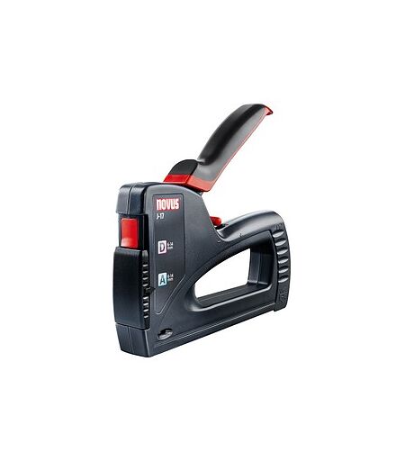 Großer Handtacker für ein angenehmes und sicheres Arbeiten: der novus J-17Der novus J-17 im hochwertigen Kunststoff-Gehäuse ist bestens für den universellen Einsatz geeignet. Der ergonomische Softgrip-Hebel liegt angenehm in der Hand, sodass Sie mit dem Handtacker leicht und ermüdungsfrei tackern können. Bei Nichtgebrauch können Sie den Hebel platzsparend verstauen.Easy-Shift-TechnologieDie Easy-Shift-Technologie macht den Wechsel zwischen Feindrahtklammern und Flachdrahtklammern spielend einfach. Sie können die Einstellung ganz leicht mit dem Schiebemechanismus vornehmen.Quick-Loading-SystemBeim Beladen des Tackers ist Sicherheit angesagt. Die Unterlademechanik mit Sicherheitsentriegelung gewährleistet ein einfaches und sicheres Befüllen des Klammermagazins.Power-ControlDiese Schlagkraftregulierung dient der manuellen Anpassung an das Material passend für Weich- oder Hartholz.KlammersichtfensterDas Klammersichtfenster gibt Ihnen jederzeit Einblick über den Füllstand der Heftmittel. Der novus J-17 ist für die Klammerngrößen 4 mm, 6 mm und 8 mm geeignet.Tackern ist nicht gleich Tackern. Erweitern Sie mit diesem vielseitigen Marken-Handtacker Ihr Werkzeug-Repertoire und bestellen Sie den novus J-17 jetzt online. ...