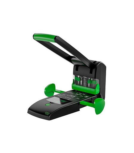 Der nachhaltige Profi unter den LochernMit dem schwarz/grünen novus Registraturlocher B2200 RE+NEW geht Ihnen die Arbeit noch schneller und leichter von der Hand. Bis zu 2 - 200 Blatt auf einmal sind kein Problem für den leichtgängigen und dennoch leistungsstarken Locher. Er kann sowohl für die 2-fach- als auch für die 4-fach-Lochung eingesetzt werden. Bei der 4-fach-Lochung haben die Lochungen einen Abstand von 3x 8,0 cm. Müheloses LochenDer Komfort-Griff macht das Lochen für Sie besonders komfortabel. Zudem bietet der novus Registraturlocher B2200 RE+NEW höchste Sicherheit durch Griffschutz. Die rutschfesten Füße sorgen für einen sicheren Stand des Lochers, der aus Metall/Kunststoff besteht. Dank Kunststoff-Rezyklat ist dieser Locher nachhaltig produziert. Die DIN-Arretierung macht es ganz leicht, die Lochung so präzise zu setzen, dass die Blätter perfekt und bündig in einem Ordner abgelegt werden können.Einfaches werkzeugloses Austauschen der VerschleißteileAuch die Lochpfeifen und -scheiben verschleißen einmal. Demnach müssen die Scheiben ca. alle 30-50 Schläge weiter gedreht und wenn sie voll sind komplett ausgetauscht werden – wie auch verschlissene Lochpfeifen. Dieser Austausch erfolgt einfach und werkzeuglos. Damit Sie Ihre Ersatzteile immer parat haben, können Sie diese im passenden Ablagefach in der Mitte der Bodenplatte aufbewahren.Wichtig: Das Zubehör-Set aus Lochpfeifen und -scheiben ist nicht inklusive und muss separat bestellt werden!Bestellen Sie gleich den novus Registraturlocher B2200 RE+NEW inklusive sechs zusätzlicher Matrizen hier in unserem Online-Shop und machen Sie sich das Lochen leichter. ...