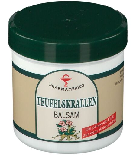 Die pflegende Kraft aus dem Süden AfrikasPharmamedico Teufelskrallen-Balsam wird mit dem Extrakt aus den Wurzeln der Teufelskralle, die wild in den südafrikanischen Savannen wächst hergestellt.Das Balsam wirkt wohltuend für Gelenke und Muskeln und ist auch zur sanften Massage geeignet. Zudem wirkt es entzündungshemmend und beweglichkeitsfördernd.Inhaltsstoffe: Aqua, Alcohol denat., PPG-1-PEG-9 Lauryl Glycol Ether, Glycerin, Propylene Glycol, Harpagophytum Procumbens Root Extract, Carbomer, Triethanolamine, Parfum, Phenoxyethanol, Methylparaben, Ethylparaben, Propylparaben, Butylparaben, CI 16255, 15985, 19140, 42090(1% Teufelskrallenextrakt) ...