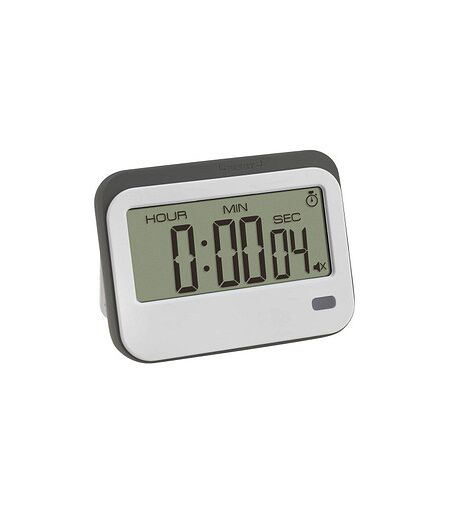 TFA® Küchentimer 38.2052.02 weiß – Präzision und Vielseitigkeit für Ihre KücheErleben Sie die perfekte Kombination aus Funktionalität und Design mit dem TFA® Küchentimer 38.2052.02 weiß. Dieses praktische Küchenutensil überzeugt durch seine vielseitigen Einsatzmöglichkeiten und sein modernes, ansprechendes Design.Material und DesignGefertigt aus hochwertigem Kunststoff ist der TFA® Küchentimer nicht nur robust und langlebig, sondern auch besonders pflegeleicht. Sein schlichtes, weißes Gehäuse fügt sich nahtlos in jede Kücheneinrichtung ein und sorgt für eine zeitlose Optik.Vielseitige FunktionenDer TFA® Küchentimer bietet Ihnen mehr als nur die Funktion eines herkömmlichen Timers. Er ist ein Multifunktionstalent mit integriertem Timer und Stoppuhr, was ihn zum idealen Helfer in jeder Küche macht. Darüber hinaus zeigt er die Uhrzeit an und verfügt über einen Weckalarm. Mit einer Zeitspanne von bis zu 23 Stunden, 59 Minuten und 59 Sekunden bietet er eine beeindruckende Flexibilität und Genauigkeit.Mehrere AlarmfunktionenOb Sie einen Kuchen backen oder eine Suppe köcheln lassen, der TFA® Küchentimer hält Sie stets auf dem Laufenden. Er bietet verschiedene Alarmfunktionen, darunter einen Alarmton, Vibration und Blinklicht, um sicherzustellen, dass Sie nichts verpassen. Wählen Sie einfach die für Sie angenehmste Art der Benachrichtigung.Praktische ExtrasDer griffige Silikonrahmen sorgt für eine angenehme Handhabung und verhindert ein Abrutschen. Zudem ist der Küchentimer mit einem Magnet ausgestattet, sodass Sie ihn bequem an den Kühlschrank oder andere metallische Oberflächen heften können. Alternativ können Sie den Timer mithilfe des integrierten Ständers auf Ihre Arbeitsfläche stellen oder ihn mit der Öse für ein Umhängeband jederzeit griffbereit um den Hals tragen.Kompakte MaßeMit seinen kompakten Abmessungen von 83,0 mm Breite, 64,0 mm Höhe und 47,0 mm Tiefe passt der Küchentimer perfekt in jede Küche, ohne viel Platz in Anspruch zu nehmen. Dank seiner handlichen Größe ist er zudem leicht zu verstauen und jederzeit schnell zur Hand.Perfektionieren Sie Ihre Küchenabläufe mit dem TFA® Küchentimer 38.2052.02 weiß – der zuverlässige Partner für alle kulinarischen Herausforderungen! ...