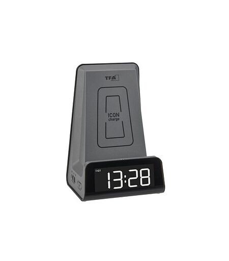 Der TFA® digitale Wecker 60.2033 ICONcharge schwarz Kunststoff 107,0 x 83,0 mm – weckt zuverlässigDas moderne Design des zuverlässigen TFA® digitalen Weckers 60.2033 ICONcharge fügt sich nahtlos in verschiedene Umgebungen ein, sei es im Büro oder im Schlafzimmer. Dank seiner Zuverlässigkeit unterstützt Sie dieses Exemplar Tag und Nacht dabei, Ihren Zeitplan einzuhalten.Macht optisch etwas her!Sowohl das Erscheinungsbild als auch die verwendeten Materialien sind bei diesem Gegenstand von großer Bedeutung – er soll schließlich zu seiner Umgebung passen. Das Gehäuse ist eckig und besteht aus hochwertigem Kunststoff in der zeitlosen Farbe Schwarz/grau. Die Uhrzeit lässt sich dank der digitalen Anzeige auf den ersten Blick auf die Minute exakt ablesen.Details zum UhrwerkDas Produkt hat ein Quarzuhrwerk. Im Gegensatz zu rein mechanischen Uhrwerken hat das Quarzuhrwerk nur Gangabweichungen von wenigen Sekunden pro Monat und ist dadurch wesentlich exakter.Praktische Details machen den UnterschiedDer TFA® digitale Wecker 60.2033 ICONcharge hat diese hilfreichen Eigenschaften:SchlummerfunktionWeckfunktionDes Weiteren bietet das Exemplar folgende Highlights: induktive Ladestation (10 W, gemäß Qi-Standard) und USB-Ladefunktion (1 A) für Mobilgeräte, höhenverstellbare Ladespule für optimale Ladeposition, weiße LED-Leuchtziffern mit 2 Helligkeitsstufen oder adaptiver Helligkeitsanpassung über Lichtsensor, für alle induktionsfähigen Smartphones und für kleinere Tablets, auch ideal als Halter während Video-Calls oder Konferenzen und rutschfester Stand durch 4 Gummipads. Die Außenmaße liegen bei 107,0 mm x 160,0 mm x 83,0 mm (BxTxH).Zeitlos schön und praktischDer TFA® digitale Wecker 60.2033 ICONcharge schwarz Kunststoff 107,0 x 83,0 mm zeigt Ihnen immer die perfekte Zeit für Ihre Vorhaben – deshalb gleich hier bestellen! ...