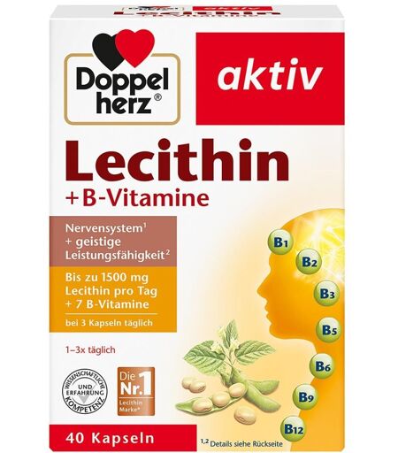 Mit Doppelherz Lecithin + B-vitamine Kapseln fördern Sie Ihre Denkleistung, die geistige Beweglichkeit, Ihre Lernfähigkeit, und ein gutes Gedächtnis. Auch starke Nerven und die Ausdauer werden durch Doppelherz Lecithin + B-vitamine Kapseln gezielt positiv beeinflusst.Wirkungsweise von Doppelherz Lecithin + B-vitamine KapselnDoppelherz Lecithin + B-vitamine Kapseln enthalten sowohl die wichtigen B-Vitamine für Ihre Nervenfunktion und die Pantothensäure für Ihre geistige Leistungsfähigkeit mit dem Plus an Lecithin.