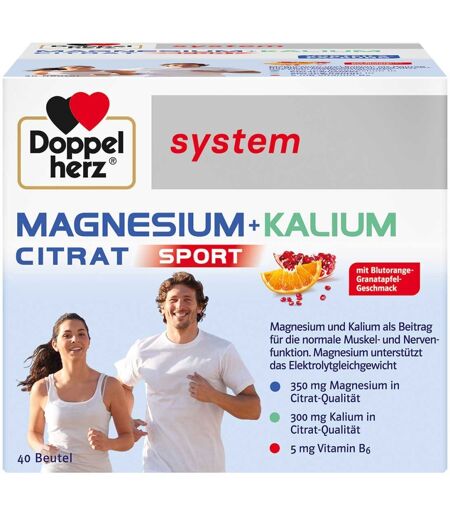 Anwendungsgebiet von Doppelherz Magnesium + Kalium Citrat system GranulatDoppelherz Magnesium + Kalium Citrat system Granulat enthält die beiden Mineralstoffe Magnesium und Kalium in Citratform. Citrate sind die organischen Verbindungen dieser Mineralstoffe. Magnesium ist ein lebensnotwendiger Mineralstoff, den der Körper nicht selbst bilden kann. Außerdem ist eine Speicherung nur in begrenztem Umfang möglich. Eine ausreichende Magnesiumversorgung trägt zur normalen Muskelfunktion bei. Magnesium unterstützt den normalen Energiestoffwechsel sowie die normale Funktion des Nervensystems. Der Mineralstoff trägt zum Elektrolytgleichgewicht bei. Da es bei starken körperlichen und sportlichen Aktivitäten häufig zu einem erhöhten Flüssigkeitsverlust kommt, werden dem Körper wichtige Elektrolyte entzogen. Daher ist es wichtig, ausreichend Flüssigkeit und Elektrolyte aufzunehmen. Kalium trägt zu einer normalen Funktion des Nervensystems und zu einer normalen Muskelfunktion bei. Vitamin B6 trägt zum normalen Eiweiß- und Glykogenstoffwechsel bei. Bei unausgewogener Ernährung oder einem erhöhten Nährstoffbedarf, z. B. durch ungesunde Lebensweise oder starke körperliche Anstrengung, kann die Ernährung mit dem Doppelherz system MAGNESIUM + KALIUM CITRAT gezielt ergänzt werden.Wirkstoffe / Inhaltsstoffe / ZutatenZutaten von Doppelherz Magnesium + Kalium Citrat system Granulat:Trimagnesiumdicitrat, Säuerungsmittel Citronensäure, Kaliumcitrat, Füllstoff Isomalt, Säureregulator Natriumyhydrogencarbonat, Maltodextrin, Aromen, Rote-Bete-Saftkonzentrat, Süßungsmittel Natriumcyclamat, Süßungsmittel Natriumsaccharin, Vitamin B6, Farbstoff Riboflavin-5-´phosphatGegenanzeigenBei bekannter Überempfindlichkeit gegen einen der Inhaltsstoffe sollte dieses Produkt nicht angewendet werden.