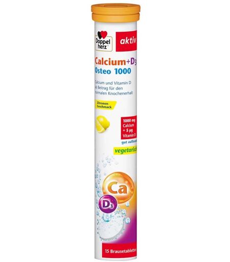Doppelherz Calcium + D3 Osteo 1000 Brausetabletten mit Calcium und Vitamin D3 sind leckere Brausetabletten mit einem zitronigem Geschmack und helfen Ihnen eine optimale Versorgung mit Vitaminen und Mineralstoffen zu gewährleisten. Da eine wichtige Voraussetzung für Ihr Wohlbefinden und Ihre körperliche Leistungsfähigkeit eine ausreichende Nährstoffversorgung für Sie unverzichtbar ist.