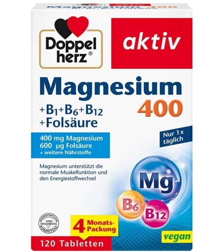 Doppelherz Magnesium 400 + B1 + B6 + B12 + Folsäure 120stk