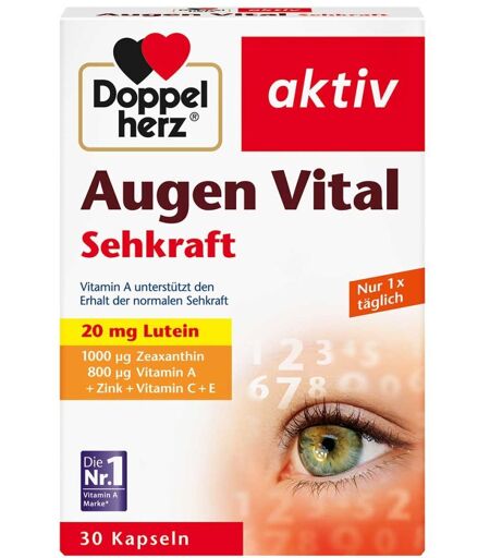 Anwendungsgebiet von Doppelherz Augen Vital Sehkraft KapselnDoppelherz Augen Vital Sehkraft Kapseln sind ein Nahrungsergänzungsmittel mit ausgewählten Nährstoffe für die Gesundheit der Augen.