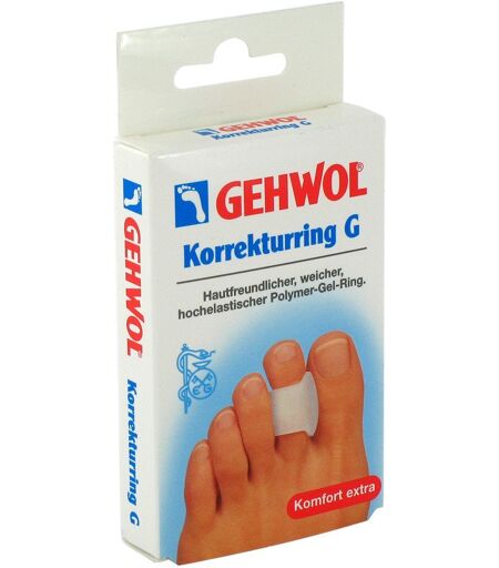 Das betroffene Zehengelenk wird somit entlastet und die Hornhautbildung reduziert.GegenanzeigenBei bekannter Überempfindlichkeit gegenüber einem der oben genannten Inhaltsstoffe sollte dieses Produkt nicht angewendet werden.InformationSeit 1868 kümmert sich die Eduard Gerlach GmbH um die Fußgesundheit der Menschen weltweit. GEHWOL ist dabei führend im Fachhandel und zugleich das bekannteste Produktvollsortiment für Fußpflege in Deutschland. Für seine Partner im Fachhandel, die Fußspezialisten, ist Gerlach zudem einer der wichtigsten Komplettanbieter für den professionellen Praxisbedarf.Gehwol Polymer Gel Korrekturring G können in Ihrer Versandapotheke www.apotheke.at erworben werden. ...